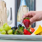 Viene offerta una colazione a buffet con formaggio, frutta fresca e pasticceria fresca.